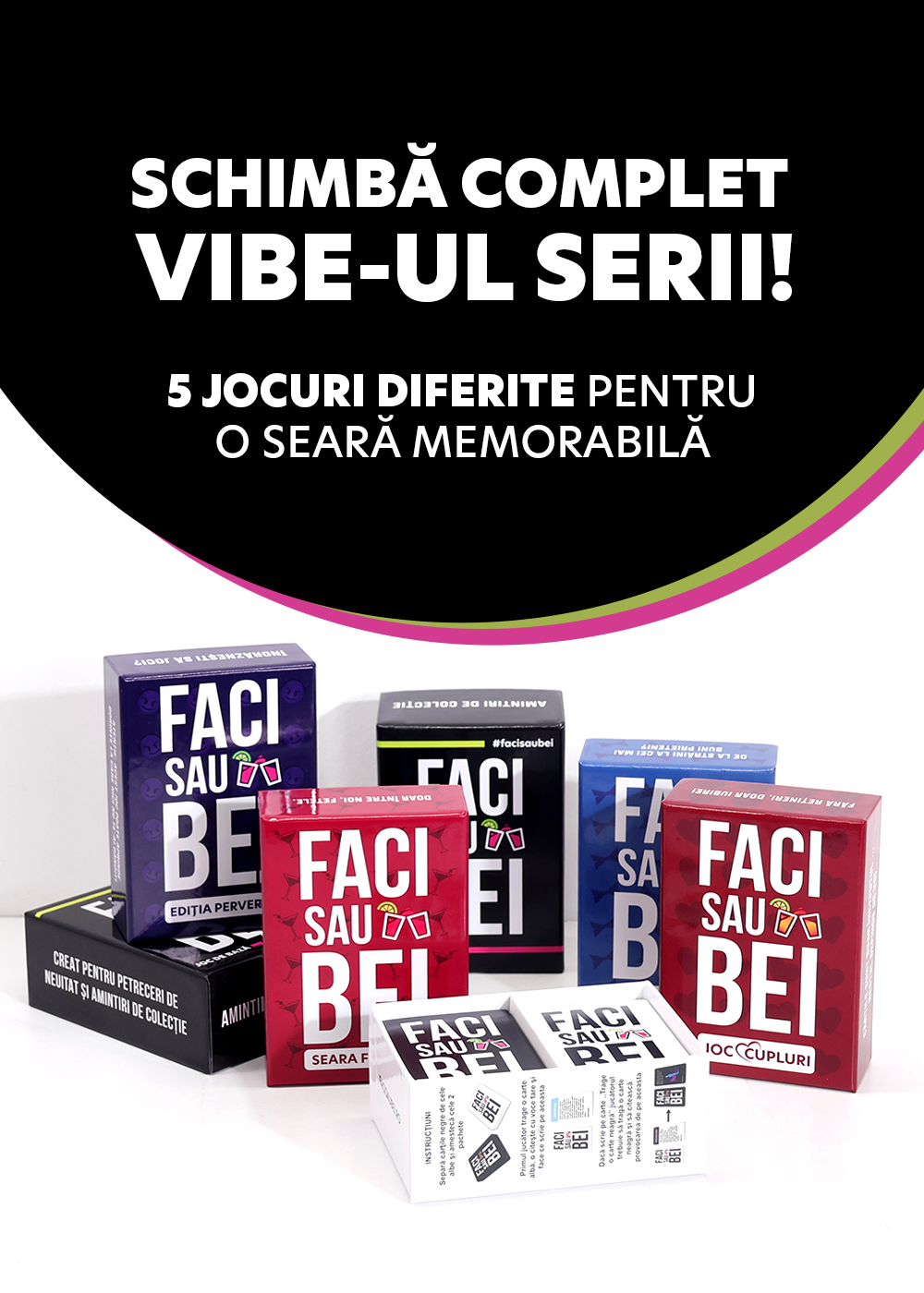 Toate jocurile sunt distractive, cu întrebări și provocări diferite. Fiecare joc e făcut să dureze 30-60 de minute și nu este necesar să terminați toate cele 200-300 de cartonașe, astfel încât puteți să îl jucați de minim 10 ori fără să vă plictisiți!
